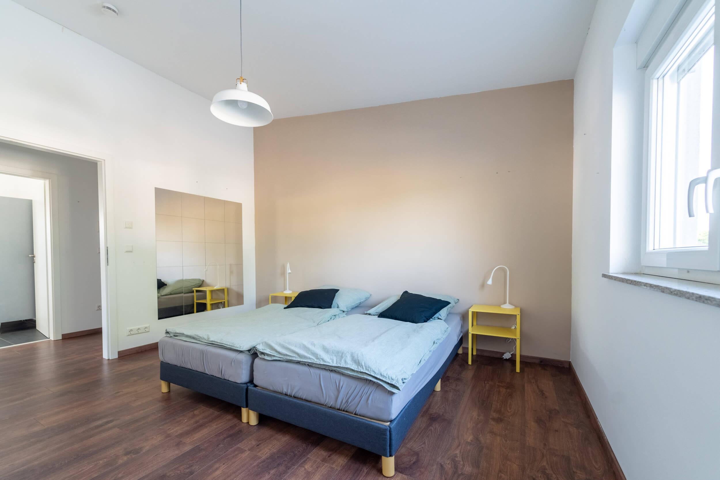Dieses Zimmer ist geräumig und mit 2 Betten ausgestattet. Ebenso verfügt das Schlafzimmer über einen großen Spiegel und eine Kommode.